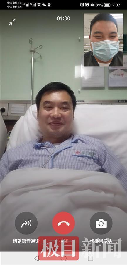 近日来,住院治疗的刘晓晖身体状况逐渐稳定。12月9日傍晚,待刘晓晖醒来后,其妻子打开手机视频,他欣然接受了极目新闻记者的远程采访。