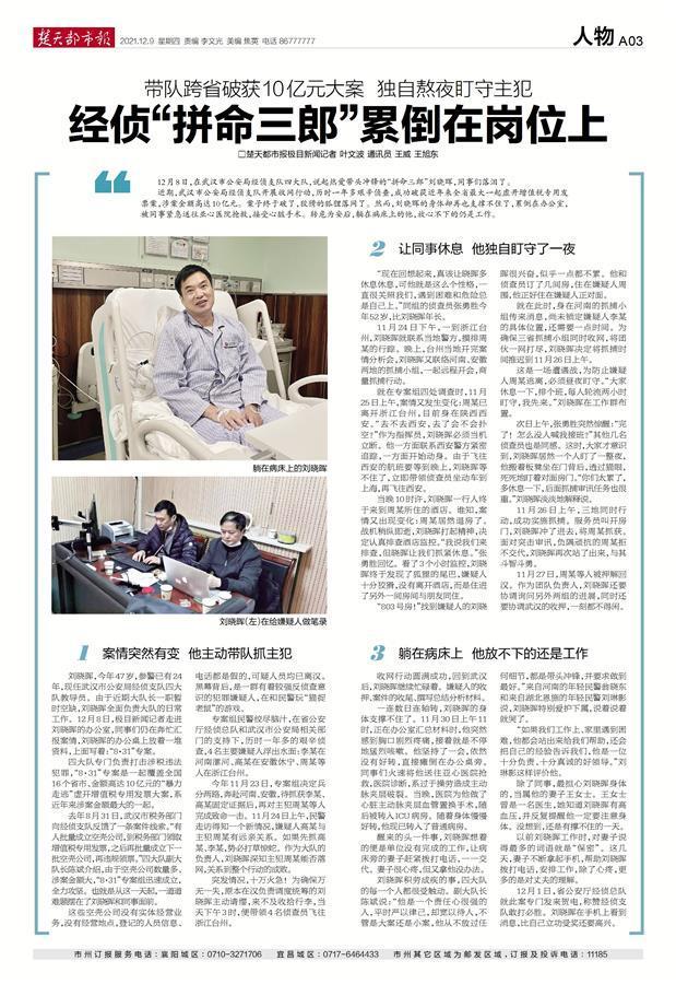 带队跨省破获涉税大案,独自熬夜盯猫眼蹲守嫌疑人,武汉市公安局经侦支队四大队教导员刘晓晖累倒在岗位上(详见极目新闻报道)。