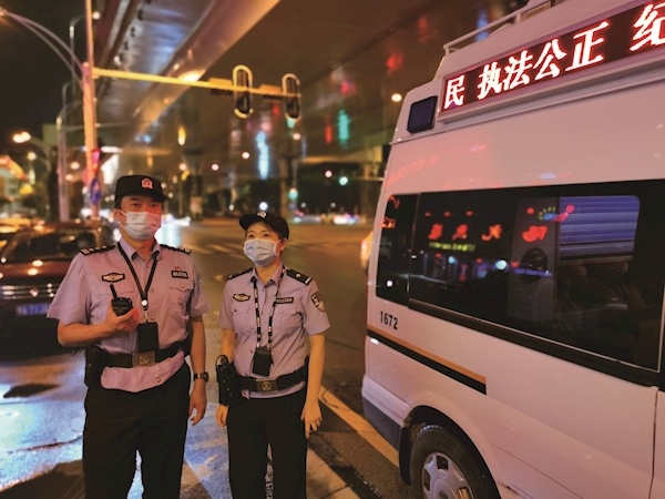 刘晓晖(左)在执行任务