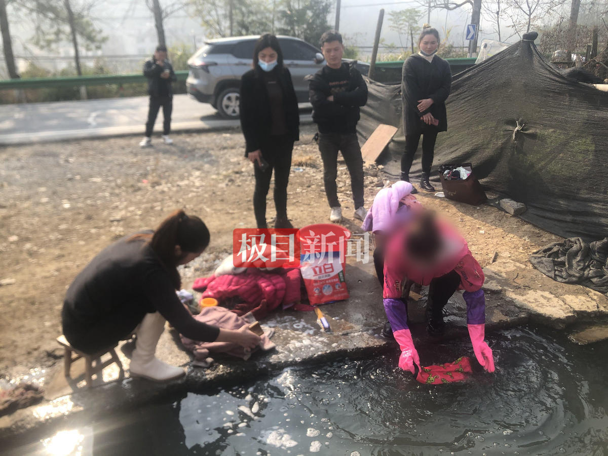 8个孩子的两个姑姑正在给孩子们洗衣服