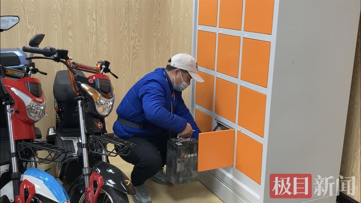 上午十时许,快递骑手高其武来到骑手之家,掏出手机扫描换电柜上的二维码,一扇柜门随即打开,他将自己车上的电瓶取出,置于柜中,插上电,关上柜门,整个环节约2分钟。高其武说:“自从用换电柜以后,电动车的充电方便多了。”他介绍,每天需要换2次电瓶。