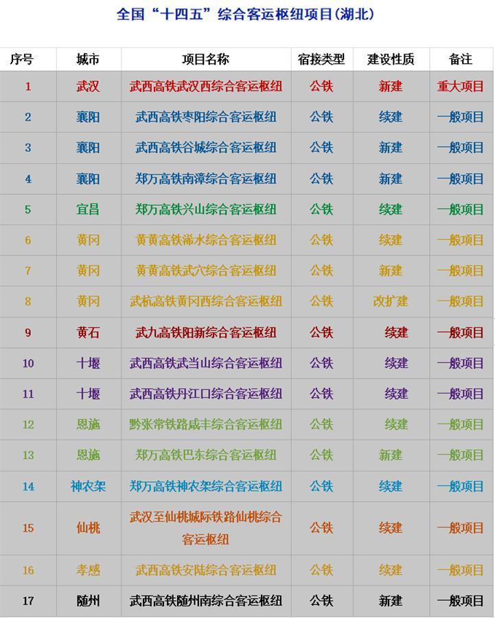 全国“十四五”综合客运枢纽项目(湖北)