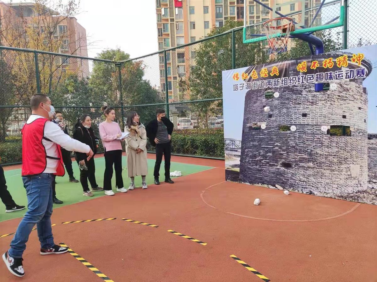 冬日暖阳,万里晴空。12月9日下午,武汉市江岸区塔子湖街道辖区两新企业的50余名党员代表,以“传红色经典、颂不朽精神”为主题,在塔子湖街道融创澜岸小区篮球场开展了一场别开生面的趣味运动会。本次趣味运动会巧妙地将红色元素融入5个体育项目中,不仅考验大家的体力,更考验团队协作能力。