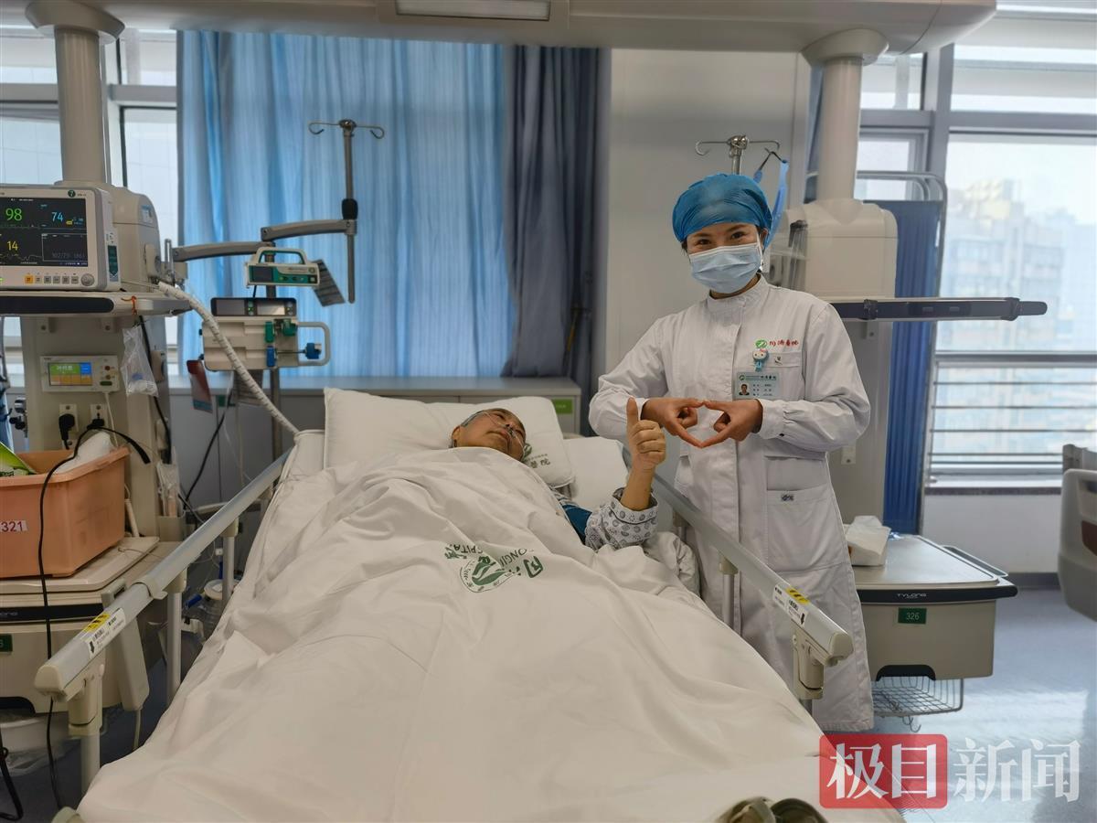让人没想到的是,列车还没出发一会儿,叶爹爹突然昏迷,瘫倒在座位上。面对这样的状况,他的老伴紧张得手足无措。身旁热心乘客立即呼叫乘务员,通过列车广播寻求同行医务人员的帮助。此时,同济医院急诊外科护士李秀欣正好和叶爹爹同处一节车厢,她得知这一状况后,迅速赶至叶爹爹身边,让他平躺并松解衣扣,发现老人意识丧失,而且颈动脉搏动微弱。李秀欣迅速对叶爹爹进行胸外按压。这时,身处另外一节车厢的同济医院光谷院区急诊科护士陈青青也迅速赶至老人身边,协助李秀欣进行抢救。经过几次胸外按压,叶爹爹开始有了肢体反应。看到叶爹爹有所好转,他的老伴激动得热泪盈眶。在之后行程中,李秀欣和陈青青一直陪在叶爹爹身边,监测他的意识和身体状态,为他搓手、按腿,让老人暖和、安心。直至列车到达汉口站,与120急救人员做好详尽的病情交接,目送救护车开往同济医院方向后,两位护士才各自离开火车站。为了方便医生了解叶爹爹的病情,李秀欣提前拨打了同济医院急诊科分诊台电话,在救护车到达之前交代好叶爹爹的发病情况及救治经过,嘱咐院内同事们做好接诊准备。经诊断,叶爹爹由于突发消化道大出血,血压急剧下降,这才导致了休克。次日,李秀欣和陈青青仍然牵挂着叶爹爹的状况,刚下夜班,又立即前往消化内科ICU病房探视老人。得知老人恢复良好,她们无比欣慰。当叶爹爹再次见到她俩的那一刻,伸出大拇指表示感谢。“我本来就是计划回来马上找医院看病,没想到到达武汉前,就得到了你们的救治!感谢你们救了我!”同济医院急诊外科护士长程晶介绍,李秀欣和陈青青平日里就对工作高度负责,对病人热心体贴。“我们会继续以仁心仁术为百姓健康服务!”她说。