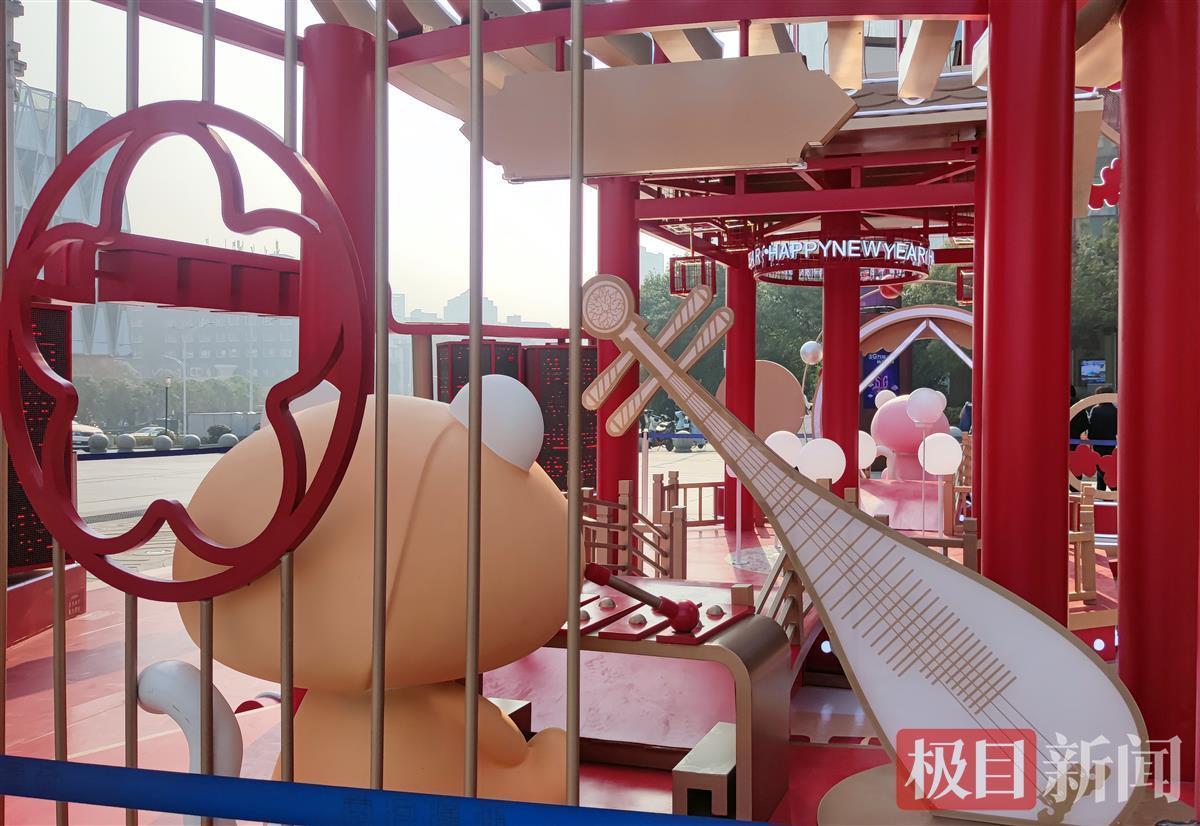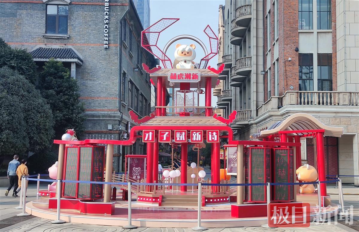“辞旧岁,迎新年”,虎年新年即将到来。12月10日,喜庆的2022新年“萌虎贺岁”亭台,竖立在武昌汉街街口广场上。