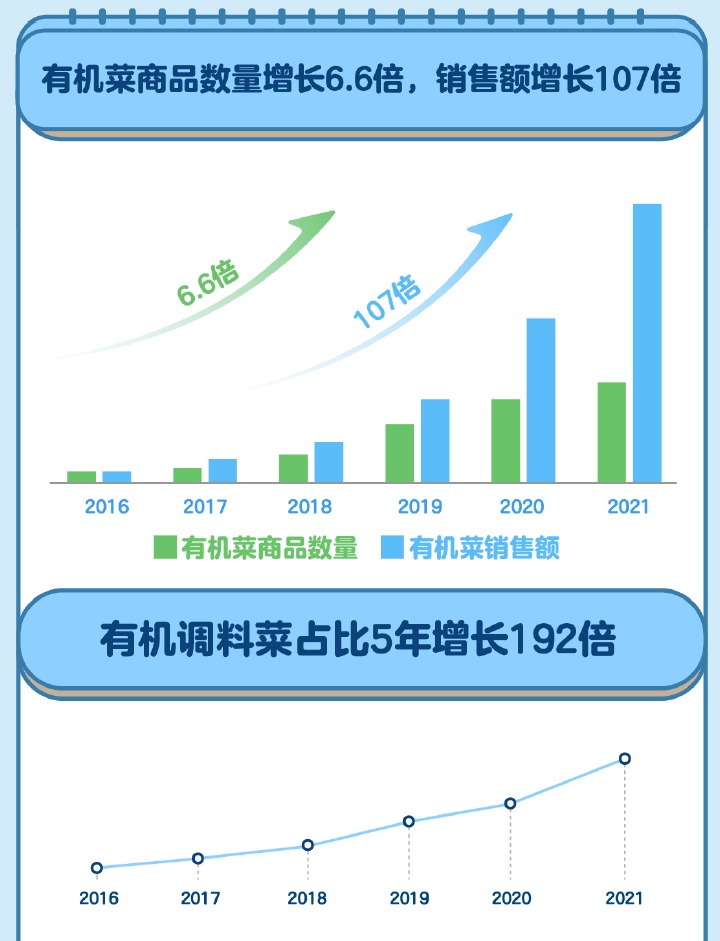 自从盒马把有机菜的价格打下来,用户的消费习惯便开始卷起来。在盒马,除了有机绿叶菜、茄瓜果之外,葱、姜、蒜、香菜、茴香叶、迷迭香、薄荷等有机调味菜的销量也在不断增长,部分盒区房用户已经进入全面有机时代。