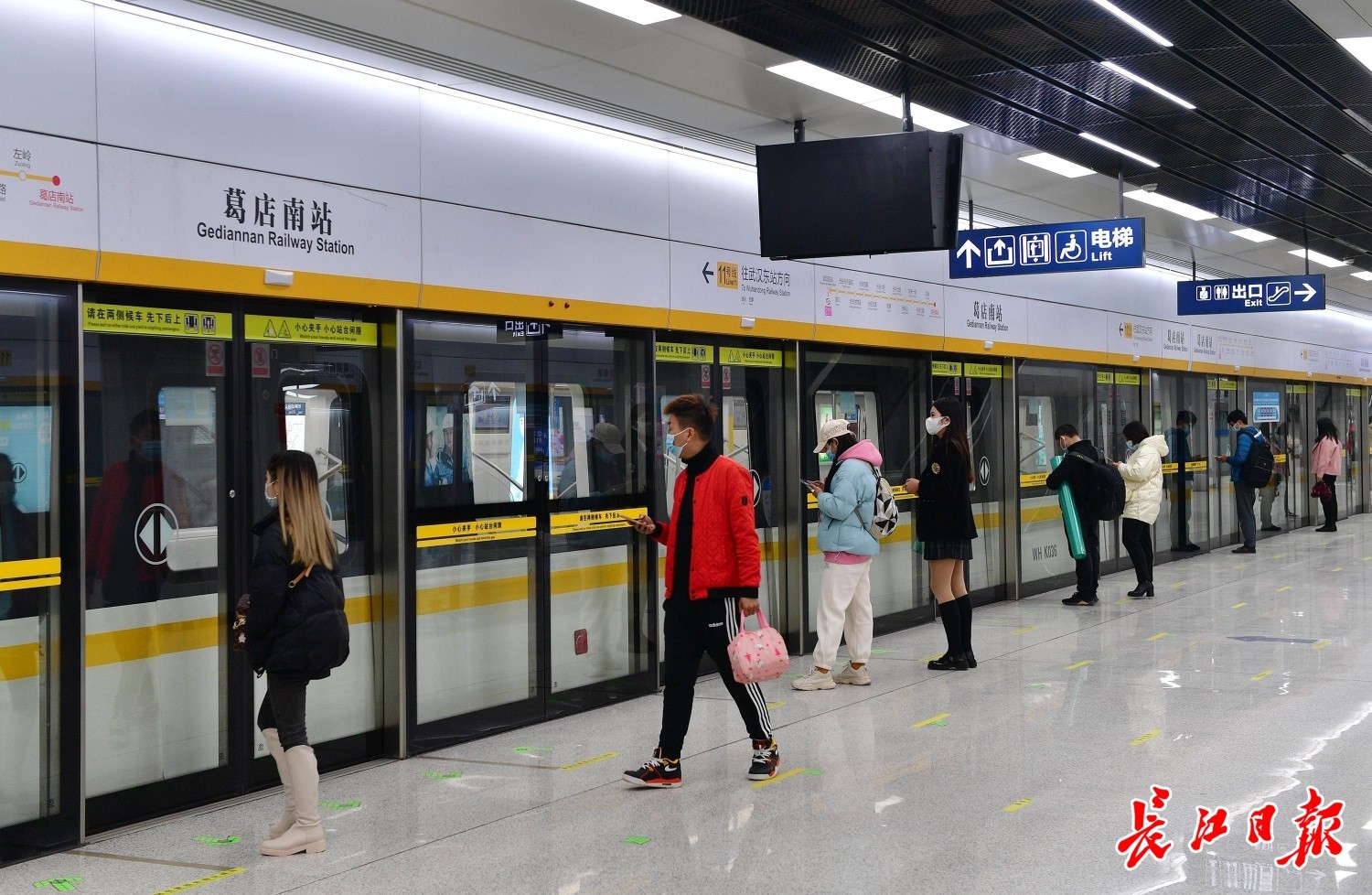 地铁11号线葛店南站,乘客在站台候车。记者李永刚摄