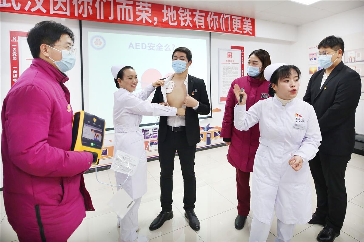 当天下午,武汉大学人民医院护理部主任蔡忠香带领医院“天使在身边”急救培训小分队,对30名地铁员工开展急救技能现场培训,也拉开该院面向社会免费培训急救技能的“第一课”。