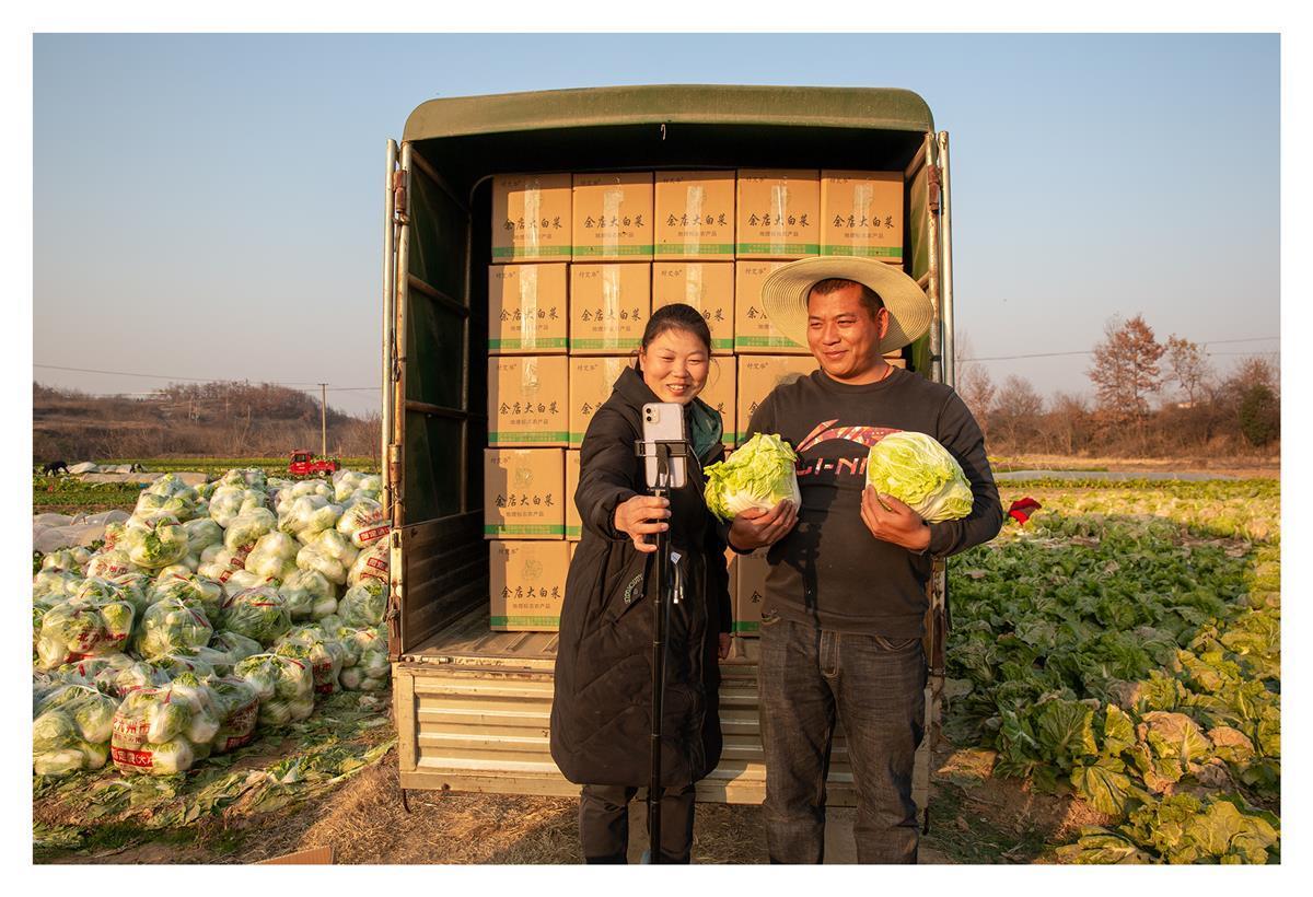 线上,付艾华每天直播带货4000余斤。线下,她和村干部一起推动白菜进盒马鲜生、中百仓储等超市。