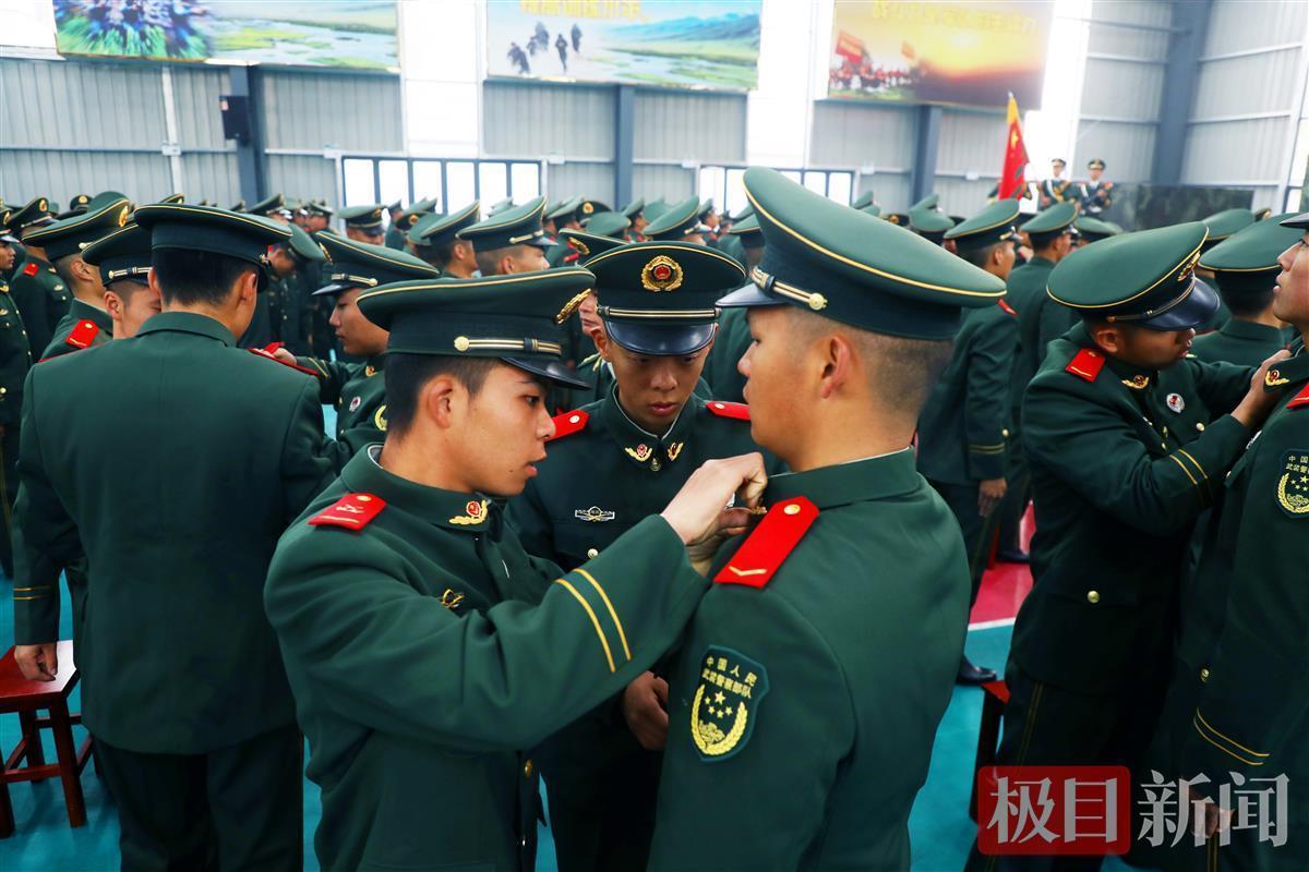 “现授予下列158名同志列兵警衔……”随着命令的宣读,新战士正式戴上崭新的列兵警衔,这一刻新兵用坚定的眼神告诉着我们:“我已经是一名合格的武警战士了!”