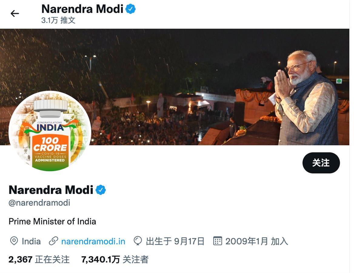 莫迪推特截图