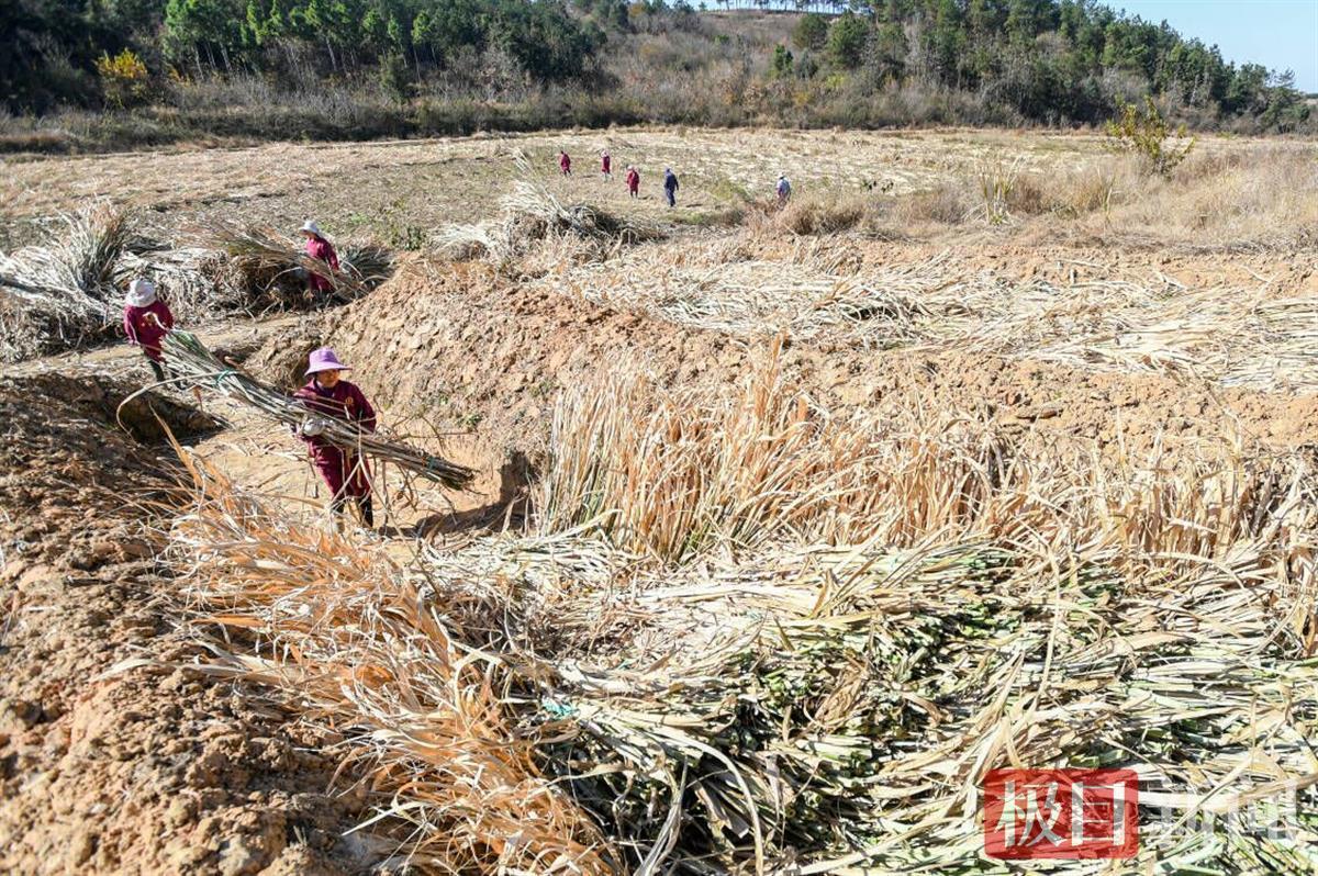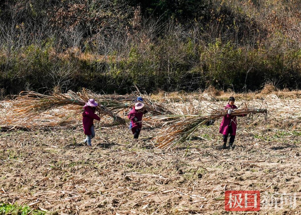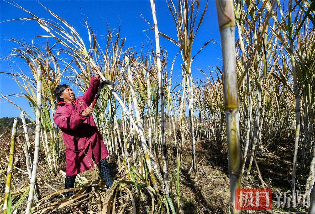 初冬暖阳晴空碧,武汉市新洲区凤凰镇毛家冲村一片甘蔗林密密匝匝,青杆仿佛嵌入蓝天。12月12日,甘蔗地正有一群家长带着孩子热火朝天体验砍甘蔗,了解红糖制作过程。俗称“秋日甘蔗赛过参”,眼下已是甘蔗收割尾季,毛家冲村村民们穿梭在甘蔗林间,利落地砍断、捆绑甘蔗,放入地窖,他们正在为来年种植甘蔗留种做准备。这是66岁的徐秀珍连续第5个年头收割甘蔗。“我现在光帮忙收割甘蔗,收入就有1万多元,是以前的几倍。”徐秀珍告诉记者。