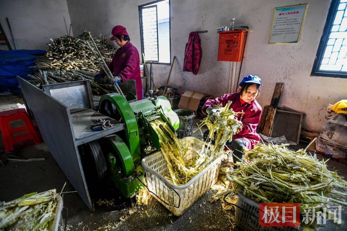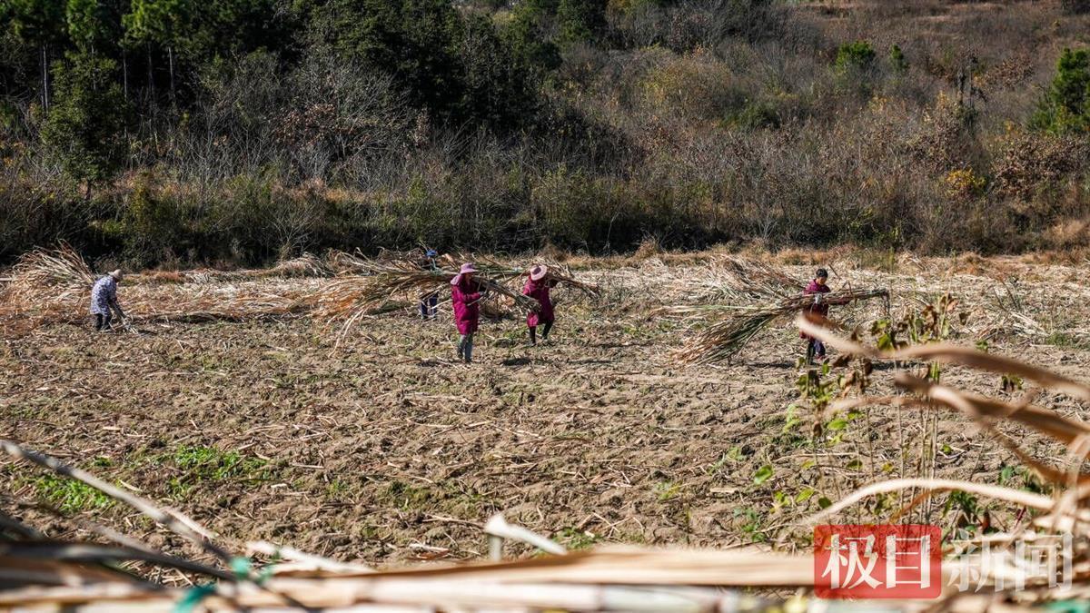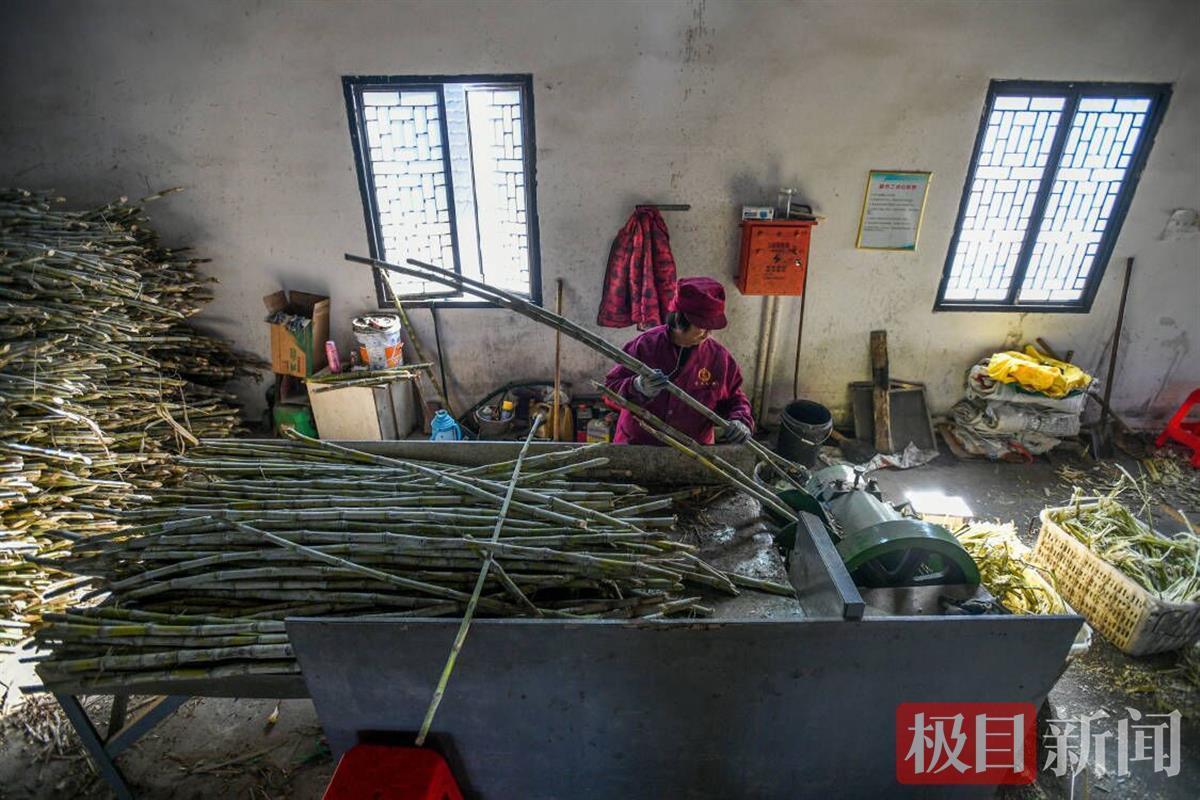 承包这片甘蔗地的正是凤凰镇点溪园古法制糖基地的负责人靖响林夫妇。谈起为何要在毛家冲村种植甘蔗,今年43岁的靖响林告诉记者,她的爷爷是原来村里有名的制糖传统手艺人,在她儿时记忆中,各家各户的地里总会留出一片地用来种植甘蔗,只要想吃了便去砍点回来。爷爷也是靠自家种植的甘蔗制糖,颇受欢迎。后来,随着赤砂糖的出现,当地鲜有人继续从事手工红糖,而爷爷做糖的工具被一场大洪水冲走后再没继续制作红糖,但总会给靖响林讲述自己年轻时种植甘蔗做糖的故事。