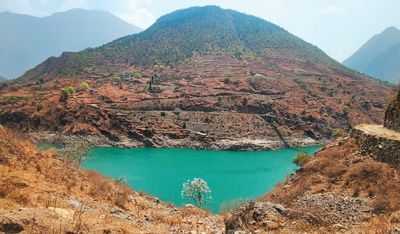 云南梧桐是极小种群野生植物的一种。这株云南梧桐(位于图中部,水畔)已有二三十年树龄,被发现时正值4月花季,在被称为“干热河谷”的金沙江岸坡上毫不显眼。当地复杂多样的植物生境使得生态保护和修复十分艰难。