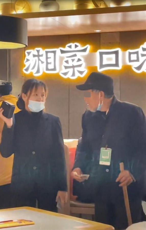 12月13日,当日事发餐馆工作人员蔡女士告诉极目新闻记者,老人最近几乎每天都来餐馆乞讨,服务员曾在门口阻拦,但老人却撞开服务员直接进到店里乞讨,已经严重影响了顾客用餐。但考虑到他是老年人,又不能硬来,想到前两天西安城管的视频,就效仿了一下。他们想用这种方法提醒顾客不要给老人钱,使其尽快离开。