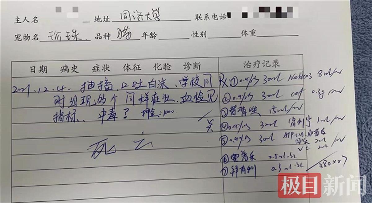 随后,记者联系上正在为猫提供救治的宠物医院,一名医生表示,12月7日开始陆续有同济大学的猫送到该处治疗,其中约9只检测出急性肾衰竭的表现。像这种大规模、群发性的发病,医生偏向为急性中毒所致。目前,宠物医院正在为中毒的猫持续提供救治。