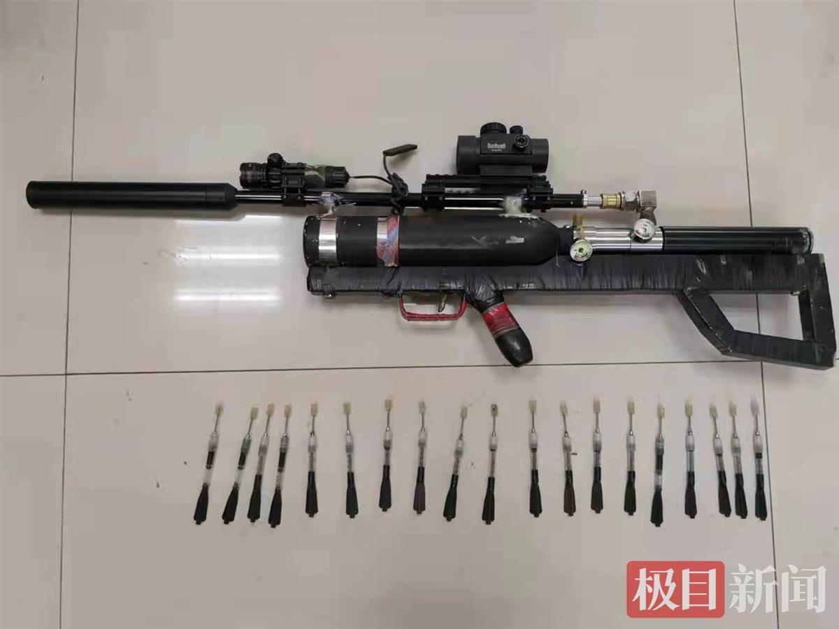 11月30日,大冶市公安局金牛派出所破获一起非法携带枪支案,抓获违法行为人1名,缴获气枪1支、毒针两包;