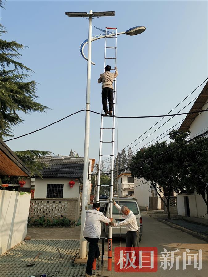在武汉市东西湖区慈惠街,冬夜的蔡家、八向两个大队显得格外宁静,12月9日晚上,路灯再次亮起来了,让整个村子也变得亮堂堂的,吃完晚饭的村民们陆续走出家门溜达,还有不少在广场上跳起了广场舞,村里的路灯亮起来还得益于这群人的到来。