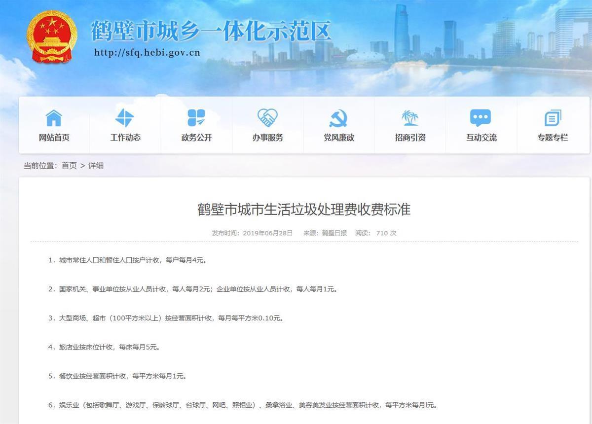 极目新闻记者查询相关报道发现,2019年6月28日,鹤壁市城市管理局的确发布了“关于加强城市生活垃圾处理费征收的通告”,并对收费标准进行了明确。当年7月1日起,鹤壁市开始收取城市生活垃圾处理费,随燃气费一同缴纳。