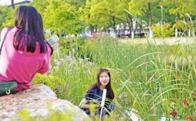 南湖花溪公园是武汉今年新建的“口袋公园”。公园占地面积21800平方米,绿化面积约为17600平方米,园内地势高于湖岸线约3米,是绝佳的“赏湖高地”。