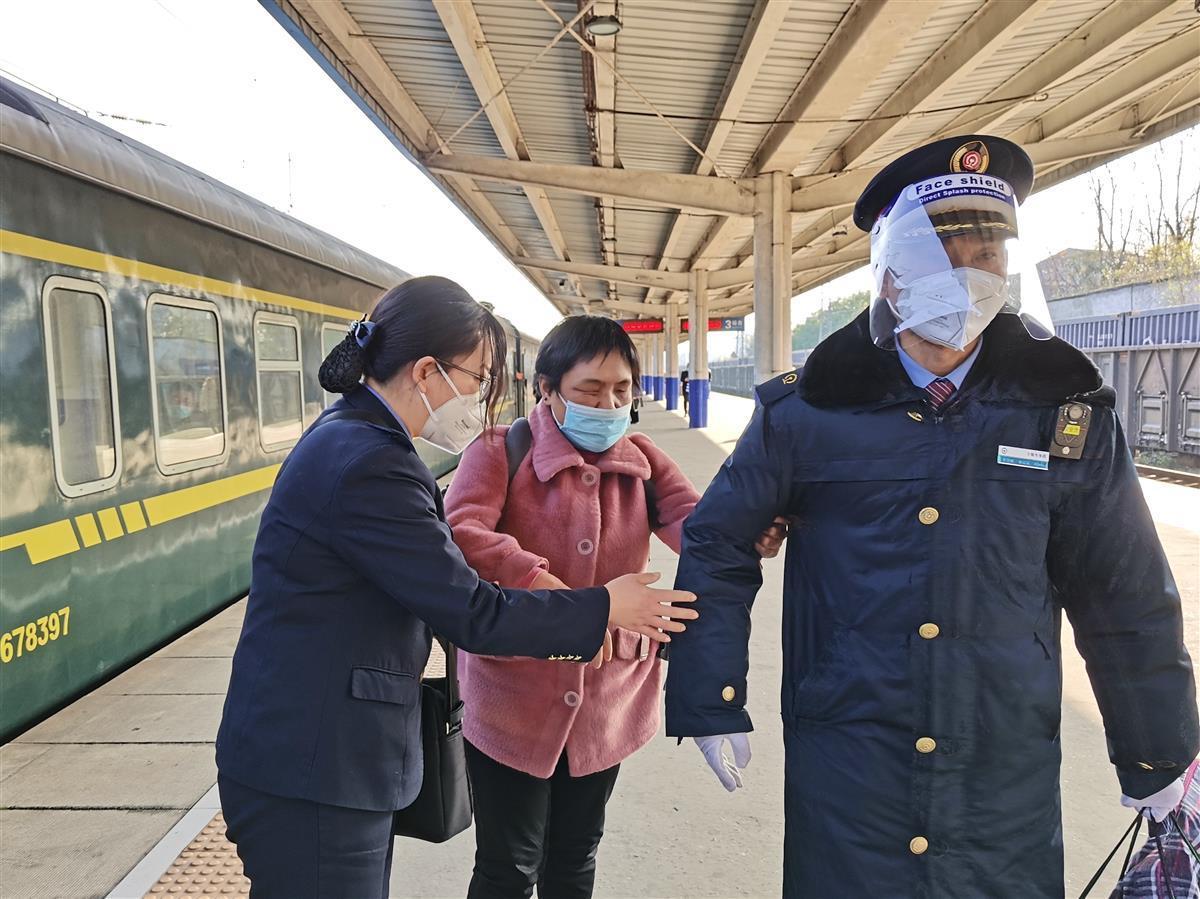 12月12日早上9点48分,K123次正点到达谷城站,苏车长早早就联系好了车站值班员,李贞牵着冯女士的手走出车厢,将冯女士交给了来接站的工作人员。临别之际,冯女士一遍一遍地向工作人员表示感谢,虽然看不见工作人员的面容,但是能感受到铁路爱心接力的无限温暖。