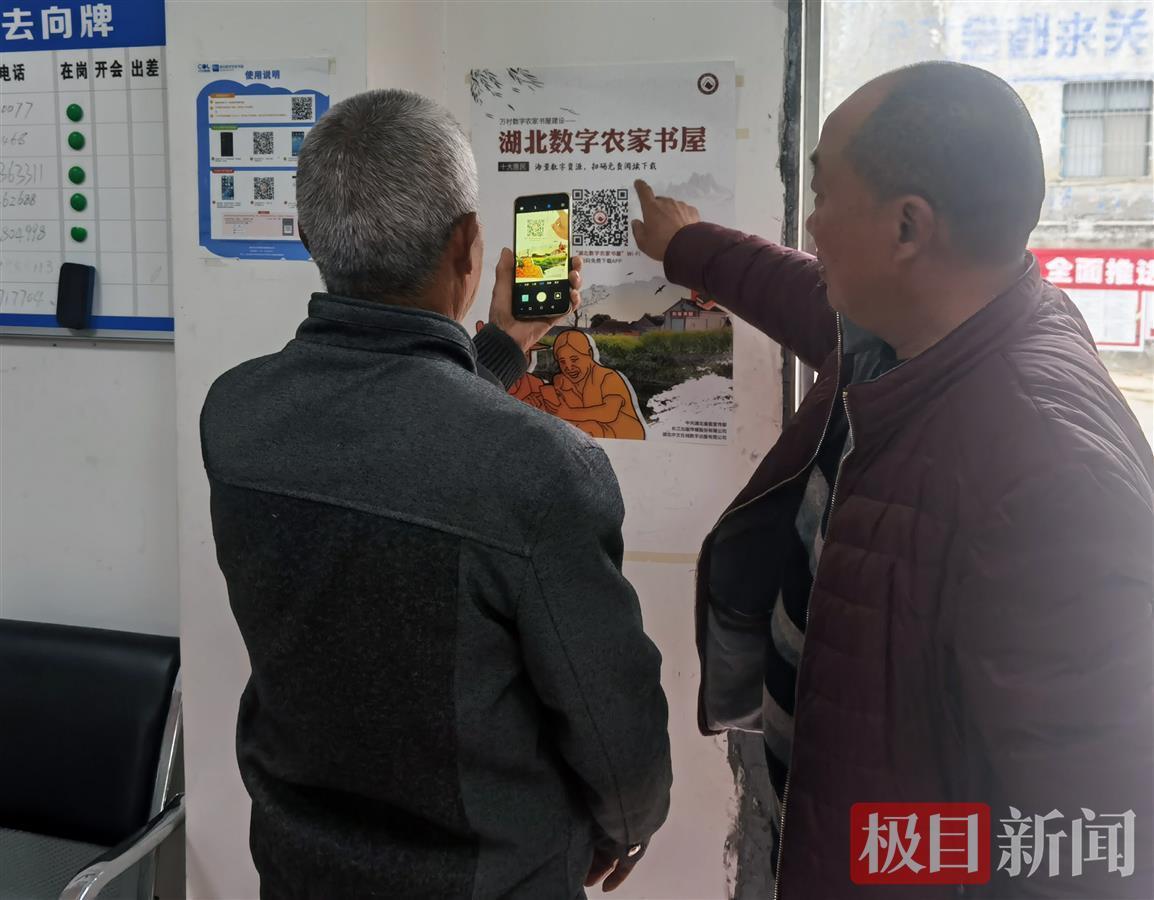 “您看,连上数字农家书屋的无线网,用微信扫一下这个二维码,下载书香湖北APP就可以免费在手机上看各类书籍了。”12月13日,湖北省十堰市上津镇石庙子村委会,工作人员正在指导办事群众下载使用数字农家书屋,开展网上阅读活动。