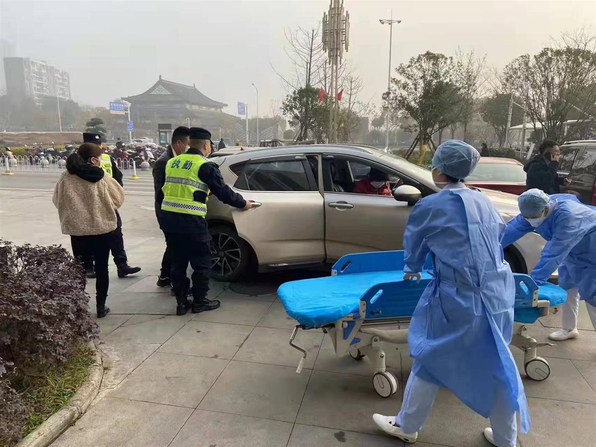 祝文、刘杰二人一边帮助疏导车辆,一边立即向检查站领导报告。由于交通拥堵情况暂未缓解,站长张明宪安排正在街面巡逻的机动车组火速奔赴孕妇所在位置。机动组民警赶到后一边安抚孕妇情绪:“别害怕,我们一定会把你送到医院,再坚持一下!”一边为其开辟“生命通道”,一路开启警灯,鸣响警笛,提醒路面车辆避让。在民辅警和热心司机朋友的帮助下,仅仅5分钟时间便到达江夏区人民医院。