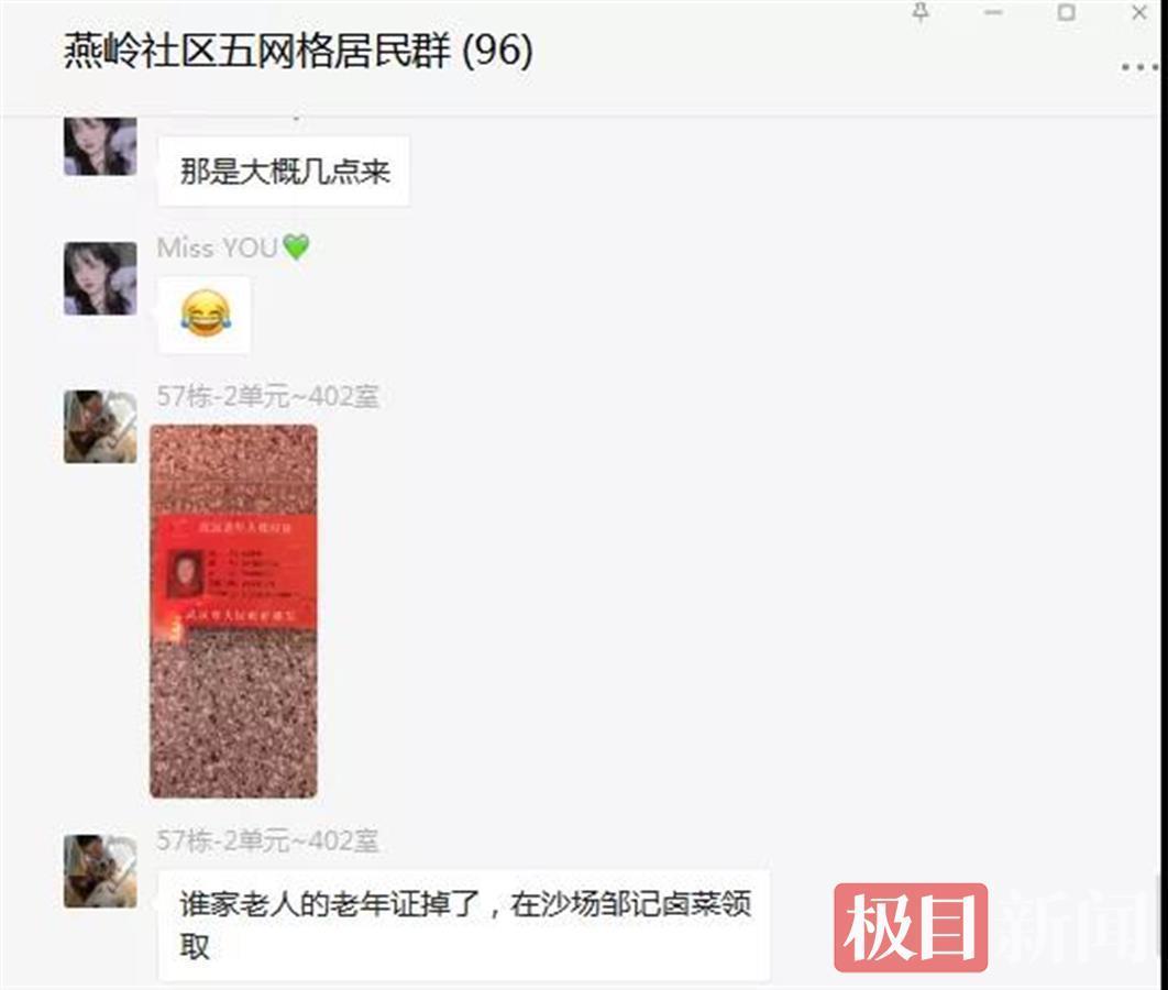 “谁家老人的老年证掉了,在沙场邹记卤菜领取。”12月13日上午,燕岭社区商户邹先生忙完手头的生意,突然发现门口有一张武汉老年人优待证,卡上只有失主的基本信息,没有联络方式,他在店内等了好一会儿,也没有等到卡主人,想到失主焦急的心情,便在居民群内发送了失物招领的信息。
