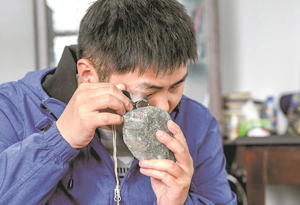 “你看,这是‘榴辉岩’,主要由石榴子石和绿辉石组成,用水清洗一下,能看到颜色非常漂亮!”在办公室,王信水经常手把手指导学生。