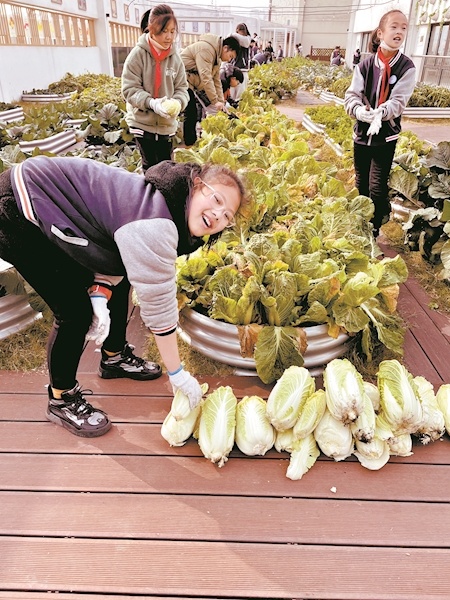学校将传统文化课程、生态课程、人工智能课程融入劳动教育,学生们在老师的指导下,通过参与种植、管理、采摘等全过程,认知自然,体验劳动收获的乐趣;认知二十四节气,进而了解传统文化。同时,在课程中加入智能化控制系统,让学生在接受自然规律的同时感受到现代科技的力量,激发大家的科技创新兴趣。