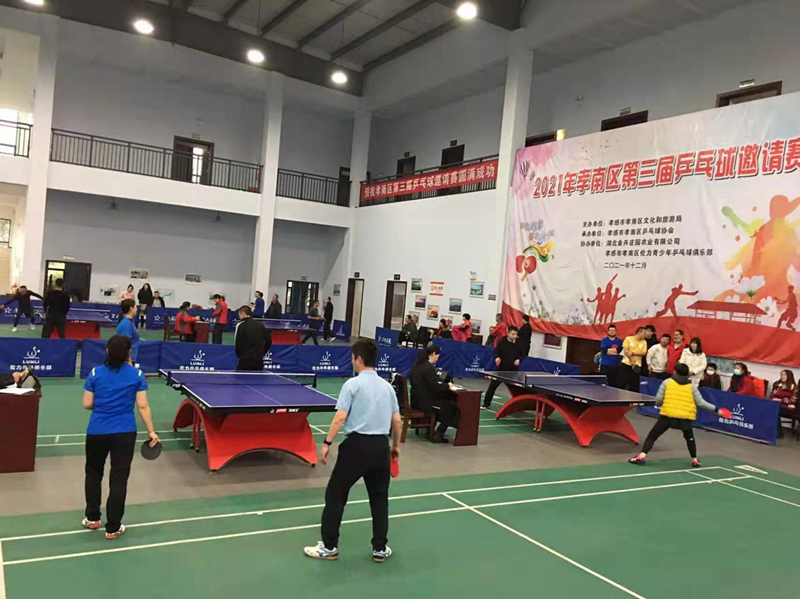 孝南区第三届乒乓球邀请赛于2021年12月11日在孝感金卉庄园运动馆举行,本届邀请赛由孝南区文化和旅游局主办,孝南区乒乓球协会承办,共有来自武汉及兄弟县市、区直单位的12支代表队参加。本次比赛对获得前四名的代表队分别给予奖励。
