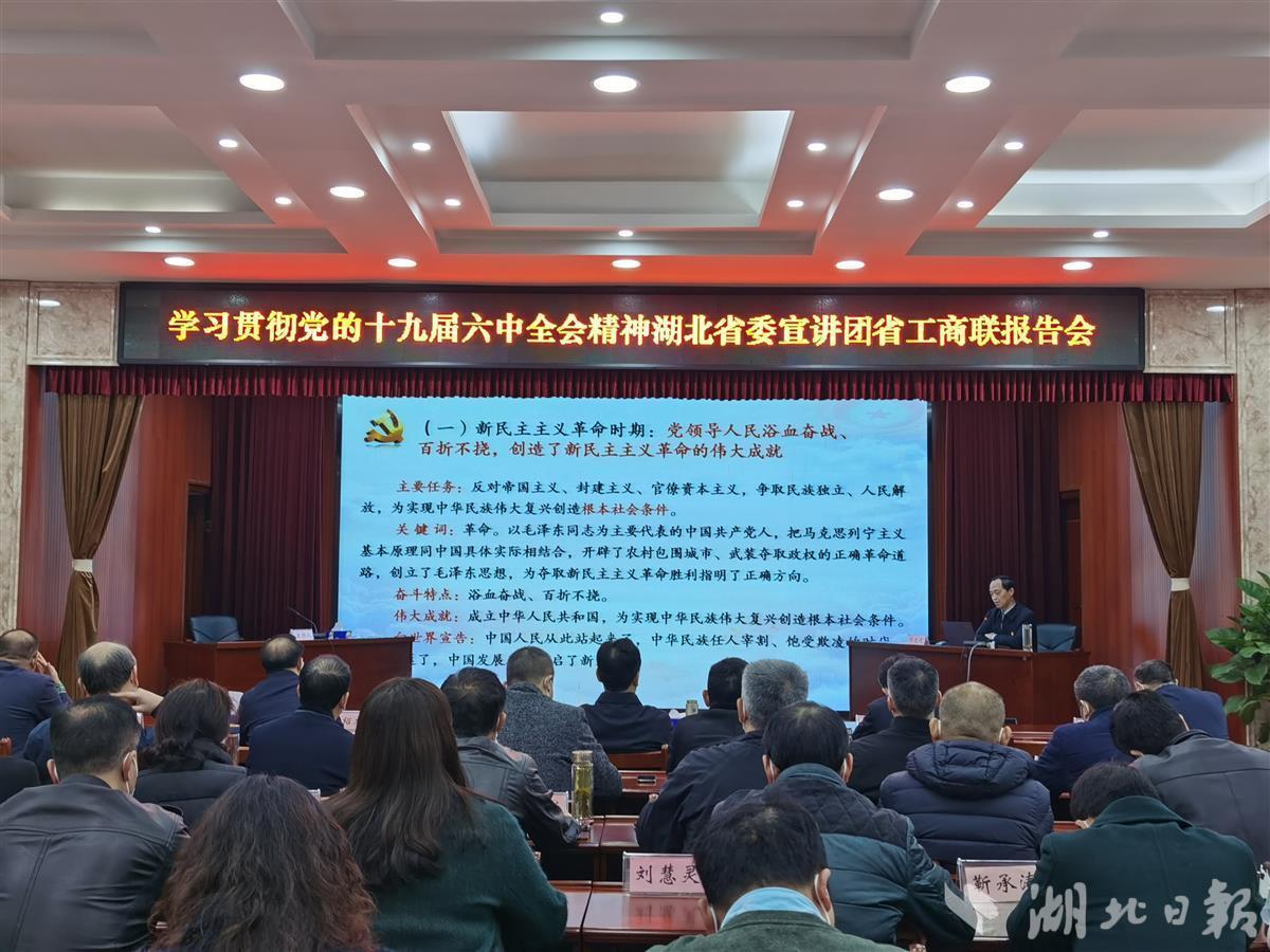 湖北日报讯(记者周志兵、通讯员陈蕊)12月15日,学习贯彻党的十九届六中全会精神省委宣讲团省工商联报告会举行。省委宣讲团成员、省社会科学院院长刘光远作报告。