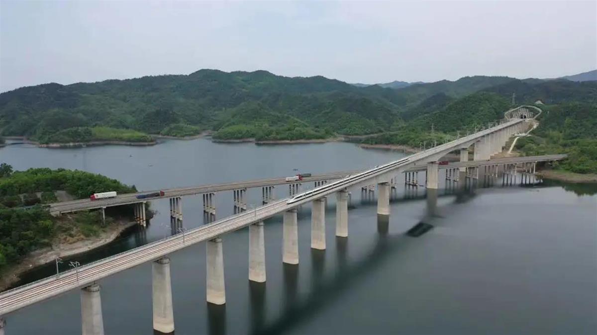 汉十高铁动车组在丹江口水库上飞驰(赵连斗 摄)