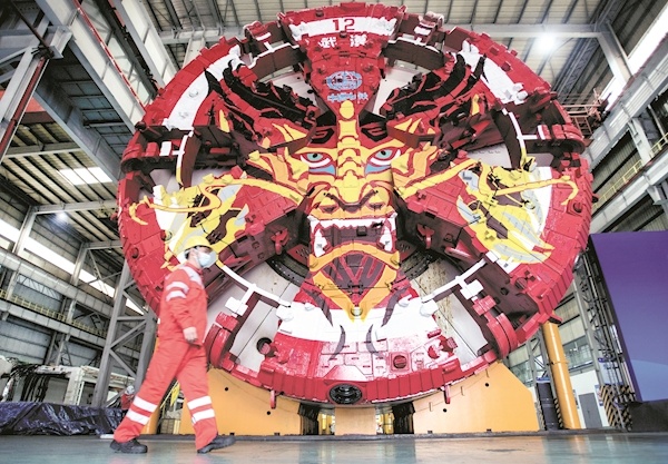 极目新闻记者了解到,该盾构机刀盘开挖直径12.56米,相当于四层楼高度,总功率约7000千瓦,与和谐号动车组的总功率相当,整机推力约16000吨,相当于长征五号运载火箭的11倍,开挖断面是常规地铁盾构机的4倍;整机重达2900吨,总长约105米,是名副其实的“基建蛟龙”。