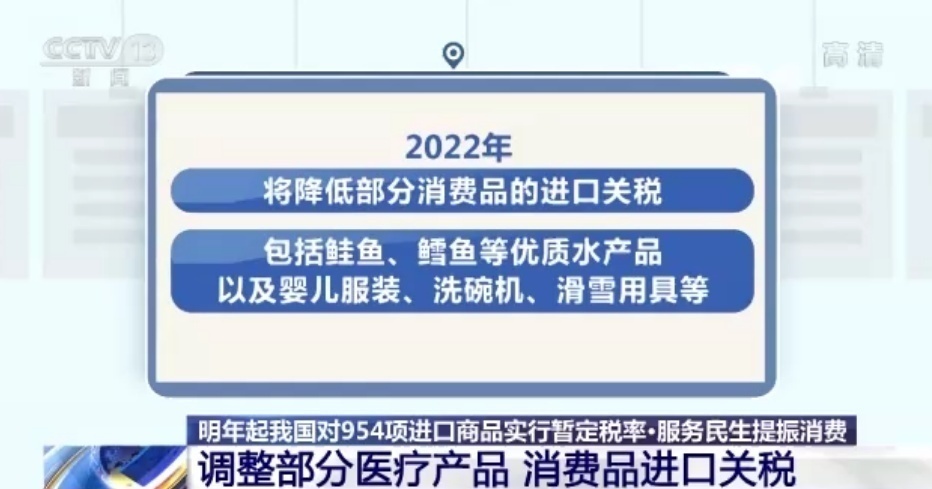 从消费品来看,2015年以来,我国大幅降低了消费品的进口关税。为了满足人民美好生活需要,顺应消费升级趋势,营造浓厚北京冬奥会氛围,2022年将降低部分消费品的进口关税,包括鲑鱼、鳕鱼等优质水产品,以及婴儿服装、洗碗机、滑雪用具等。