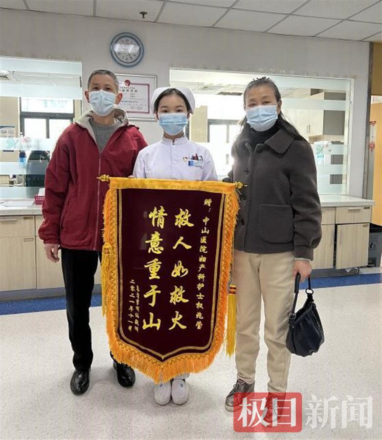 在公园遇到一位老人瘫坐在地,湖北省第三人民医院(湖北省中山医院)护士权兆莹马上上前,为老人检查伤势呼叫急救(“老人瘫坐在地,女子挺身上前,检查伤口、呼叫急救、联系家人一气呵成”11月25日极目新闻曾报道)。16日,老人家属专程来到医院,向权兆莹送上致谢锦旗。