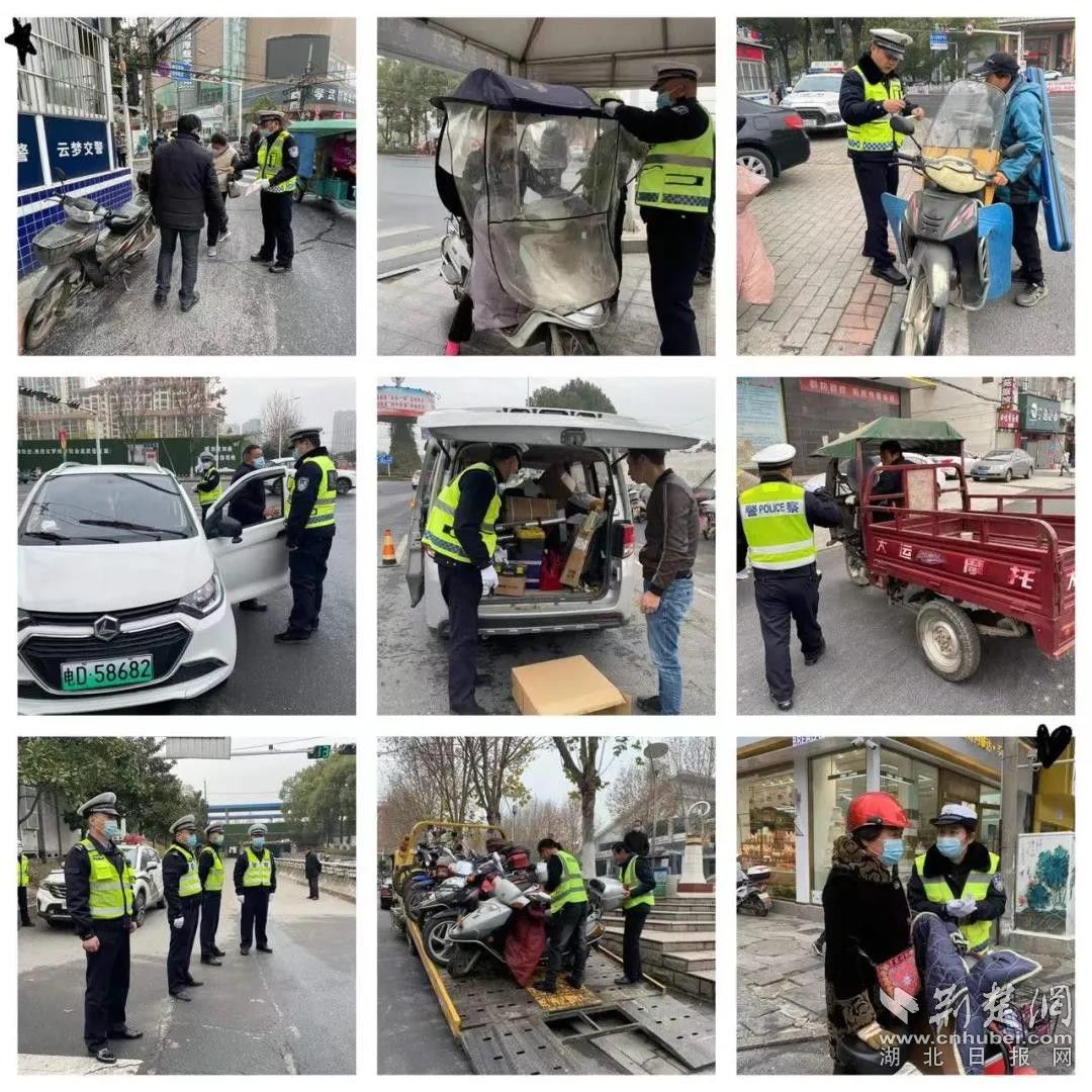 在当天的规模交叉执法整治行动中,云梦城区8个执勤点共查处各类交通违法行为827起。其中:现场查扣逾期未年检机动车6辆,无牌无证摩托车168辆(含无牌无证四轮电动车28辆),查处酒驾1起,无证驾驶14人,货车超载100%以上2起、货车超长1起,货车违法禁令禁行6起,面包车超员1起、违规载货6起,机动车不按规定车道行驶2起,驾乘机动车不系安全带102起,机动车客货混载4起,摩托车未戴安全头盔273起,非机动车及行人不遵守信号灯通行95起,拆卸违规安装遮阳伞146把。