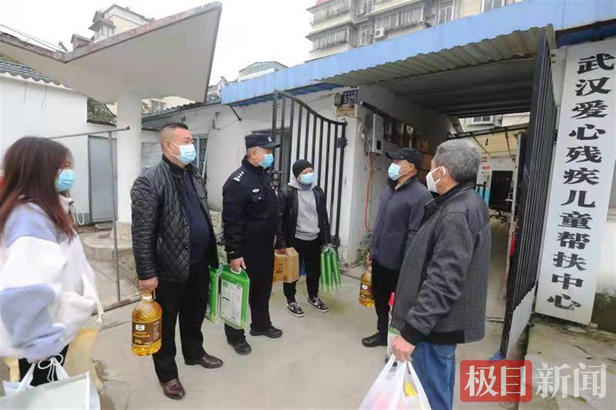 今年57岁的熊远文是硚口区公安分局古田派出所社区民警,当天是虎子15岁的生日,老熊特意买了生日蛋糕和米、面、油、口罩、酒精等生活防疫物资,来看望他和这里的孩子。