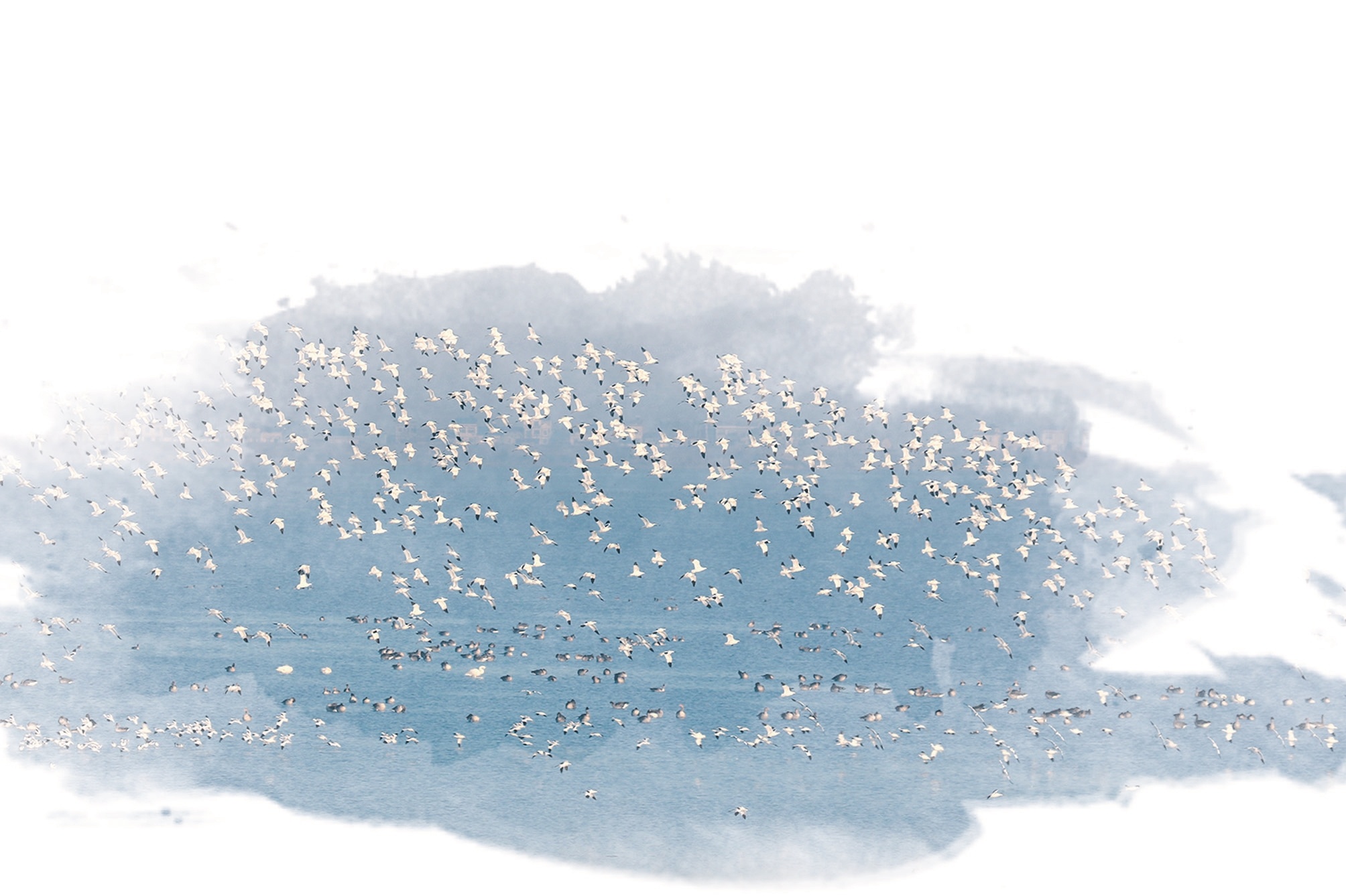 数百只反嘴鹬尽情翻飞