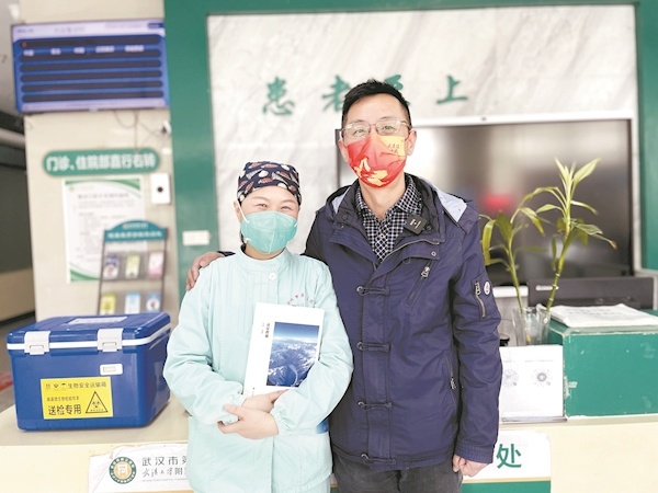 5个月前,叶先智离汉援藏,从那天开始,姚魅一直在写作记录丈夫援藏之行。5个月的时间,姚魅记录的内容已经写满了厚厚的一本书。得知丈夫要回医院,她带着装订好的日记书,早早地来到门诊大厅等候丈夫,叶先智一走进来,她就将这份迟到了3个月的生日礼物递到了叶先智手上。