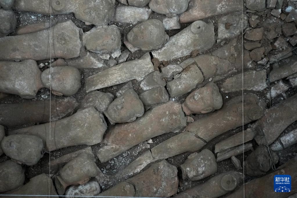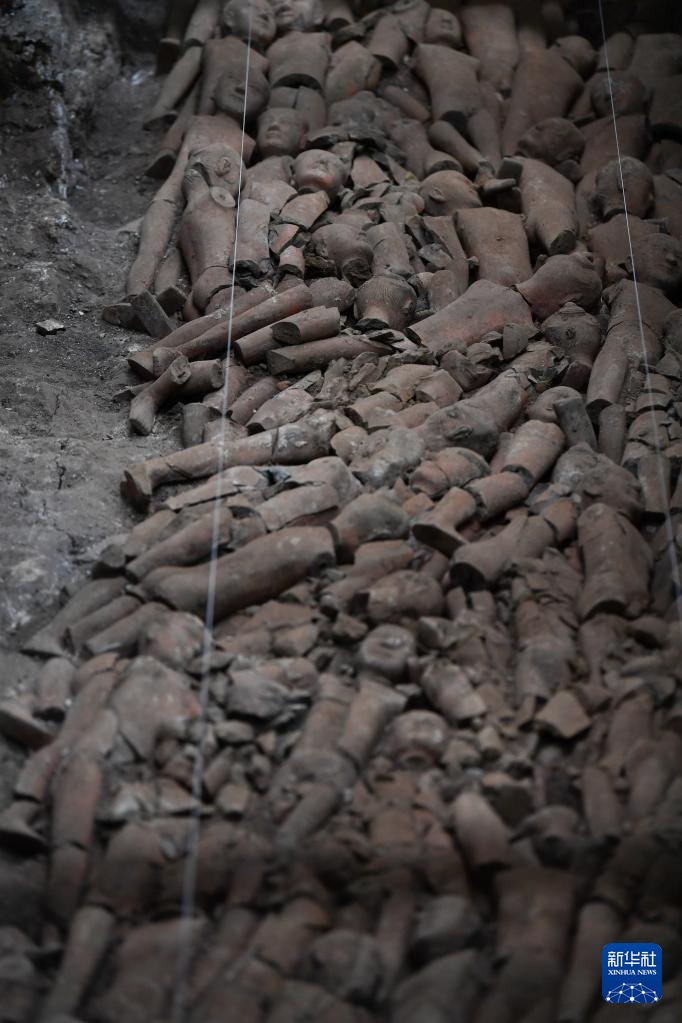 这是江村大墓外藏坑出土的彩绘陶俑(12月16日摄)。