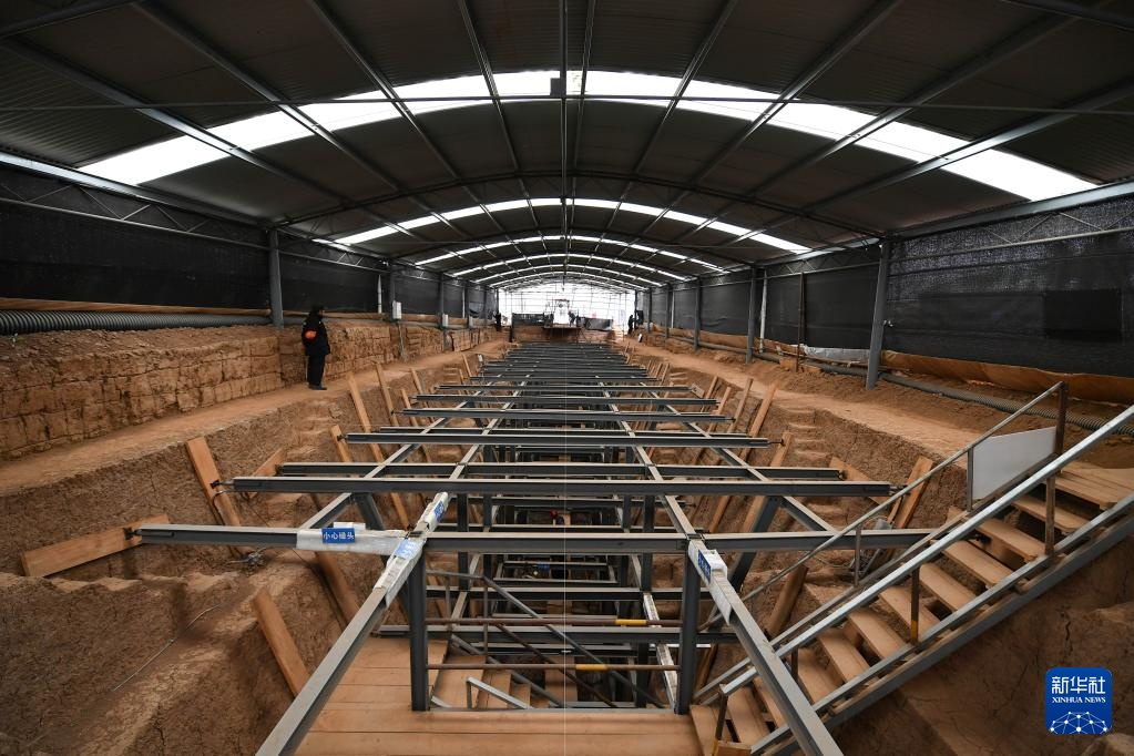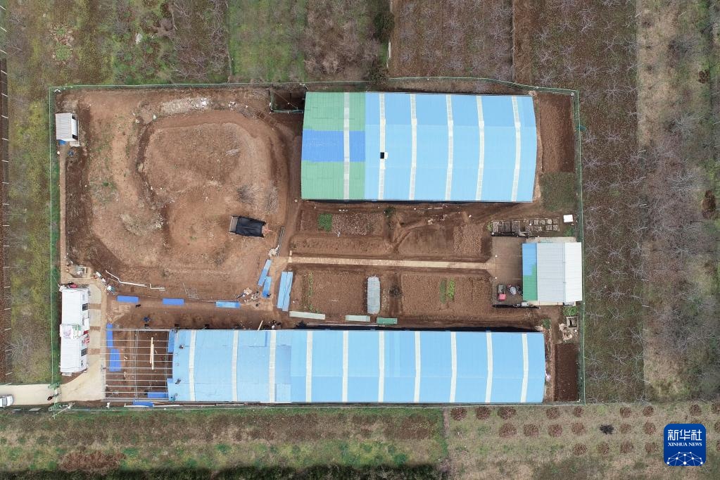 12月16日拍摄的江村大墓外藏坑发掘现场(无人机照片)。