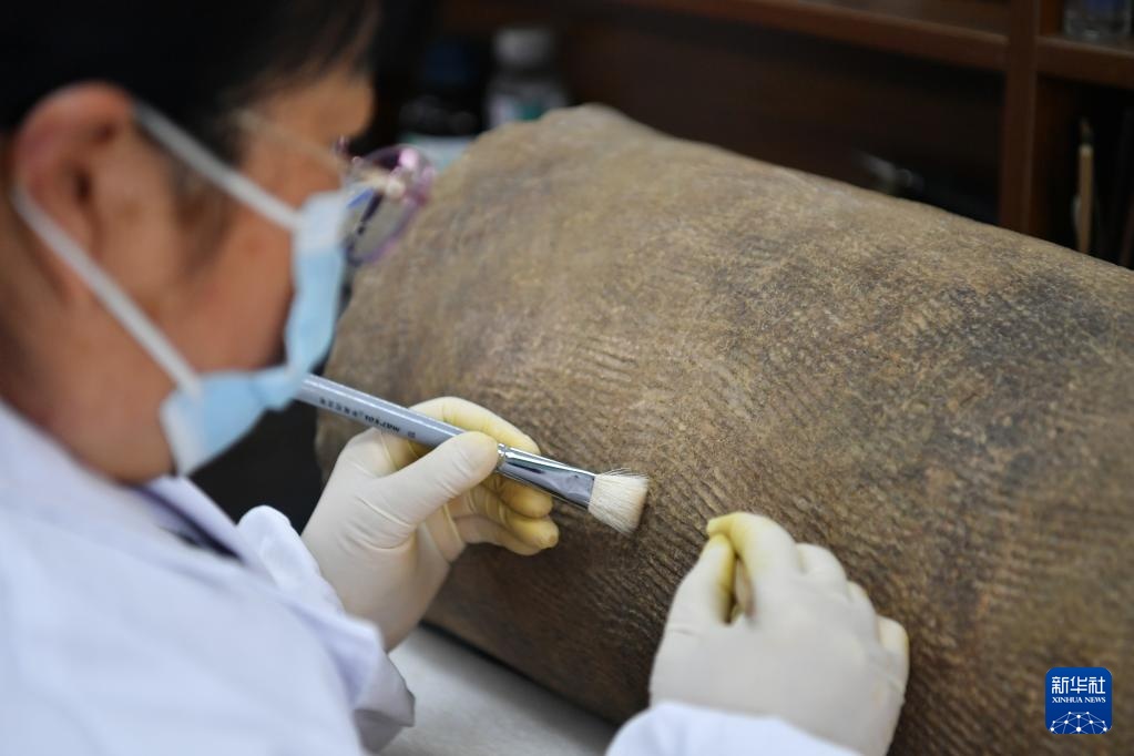 12月16日,工作人员对江村大墓出土的文物进行清理。