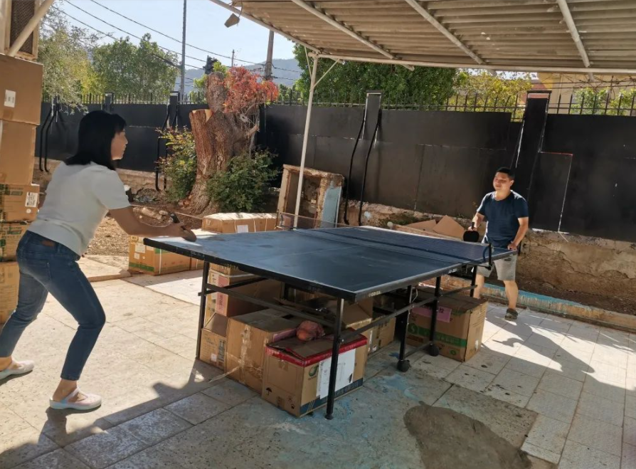 在这里,我们每天都过着宿舍和医院两点一线的生活。为了安全,我们平时都呆在宿舍的小院子里,除了集体出去购买必要的生活物品外,几乎很少外出。还好,宿舍的院子里有一个兵乓球台,这成了队员唯一的运动消遣方式。