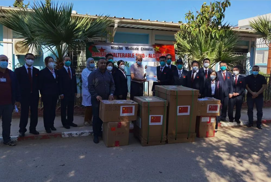 在阿尔及利亚艾因迪夫拉省综合医院举行的重症医疗设备捐赠仪式。(图片来源:新华社)