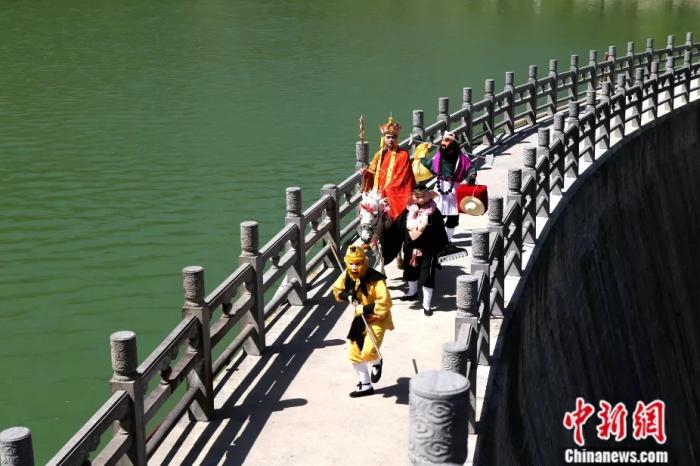 2017年4月,河南济源,演员扮演成唐僧师徒演绎《西游记》经典故事场景向86版《西游记》致敬。中新社发 王中举 摄