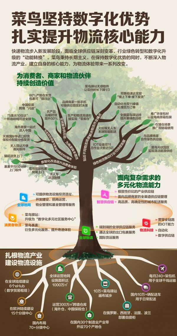 “用数字化提升物流效率是菜鸟的初心,深耕物流产业、扎实提升物流运营能力是菜鸟的决心。作为一家物流产业互联网公司,菜鸟既有互联网技术优势,也会扎根在物流产业中,扎扎实实地建设自身的物流核心能力。”万霖说。他表示,面向未来的菜鸟会坚持长期主义战略方向,持续提升物流核心能力,在基于身位优势的前提下持续夯实服务壁垒,支撑菜鸟未来更稳健可持续的发展。