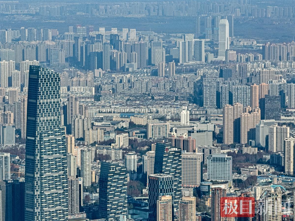 12月17日,武汉迎来好天气。极目新闻记者登临武汉绿地中心停机坪,凭栏远望,江城风光尽收眼底。
