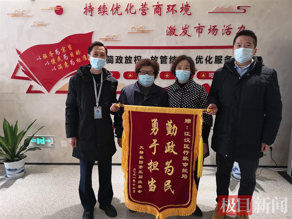 “感谢你们多方协调,解决了长期困扰我们的问题!”近日,天梨豪园第五届业委会为江汉区行政审批局送上了一面印有“勇于担当 勤政为民”的锦旗,为审批局耐心细致的服务点赞。