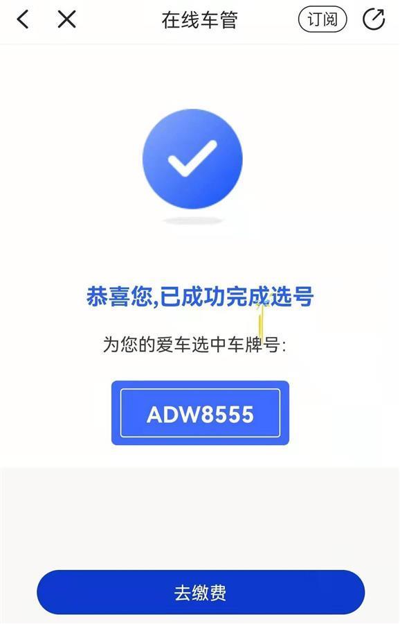 选定号码,胡女士通过APP页面引导,付了证件、车牌等材料的工本费130元,以及快递费18元。付钱之后,胡女士再次返回到该页面,确认自己真的选中了“555”的号牌。胡女士说,选到这个号,自己很惊讶,也很开心,所以多次进行确认。